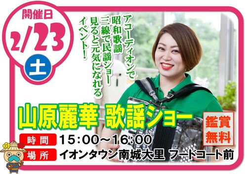 皆様、こんにちは(*Ü*)︎︎イベントの2週間前をきったので、告知をしたいと思います❤ 平成生まれの私、山原麗華(ヤマハラ レイカ)が、 「アコーディオンで昭和歌謡、 三線で沖縄民謡、 見ると元気になれるイベント」 というキャッチフレーズで 「山原麗華 歌謡ショー…