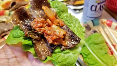 皆様こんばんは(♡ˊvˋ♡)︎︎今日は、友人大人6名、子供5名で、ハロウィンパーティーと併せて焼肉会をしました 友人が買ってきてくれたお肉たち♡ 焼いて食べたり、 サムギョプサルにしてみたり、 お肉!お肉!お肉!…な食事でした そして、友人が作ってくれたメ…