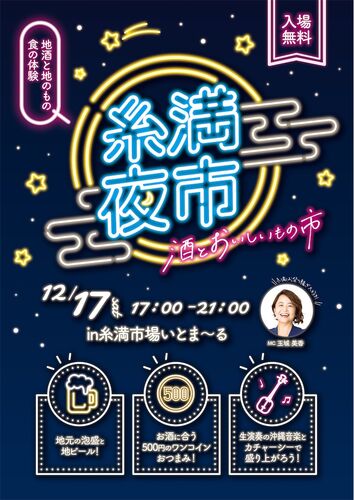 【 告知 】 来週開催のイベント、『糸満夜市』に出演します⭐️ 日時:12月17日(土) 17時〜21時場所:糸満市場いとま〜る私の出演時間:18時〜 地元の美味しい食べ物やお酒を楽しみながらステージが見られます ぜひ、遊びに来てくださーい❣️ - - - - - - - - -…