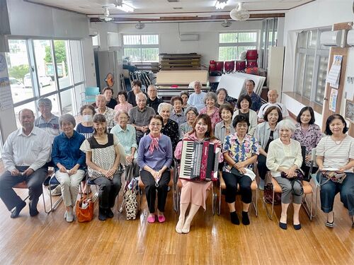 今日の #琉球新報 \シン·/出張コンサートは、八重瀬町長毛公民館を訪問しました 実は10年近く前、まだ歌い始めの頃にアコーディオンを演奏して歌いに行ったことがありました。 その事を覚えてくださっていた参加者の方がたくさん居て、『初めて来た10年前…