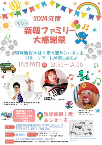 10/20(日)は、琉球新報 社1階にて、『新報ファミリー大感謝祭』に出演します 私の出番は、12時〜13時✨️オンステージでコンサートを行います 吉幾三さんに作って頂いた『私の沖縄』も生歌唱。 【 詳 細 】 日時:10月20日(木) 12時〜13時(私の出演時間) 場所…