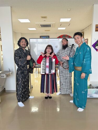 おはようございます️☀️.° 先日は、宜野湾市宇地泊自治会、老人会の敬老会、新年会に出演しました 秋に行われた宇地泊祭りでもお会いした「はにんすも〜れ」さんたちも一緒で、賑やかで楽しい会✨️ ある方から「赤い山脈が大好きなんです」というお言葉も♡ そ…
